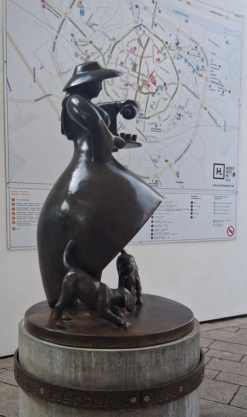 - A bronze fountain sculpture on Capucienenplein, designed by Lou Boonman and unveiled in 1981. Along with the Borrelmanneke, it symbolizes Hasselt’s jenever (gin) tradition.